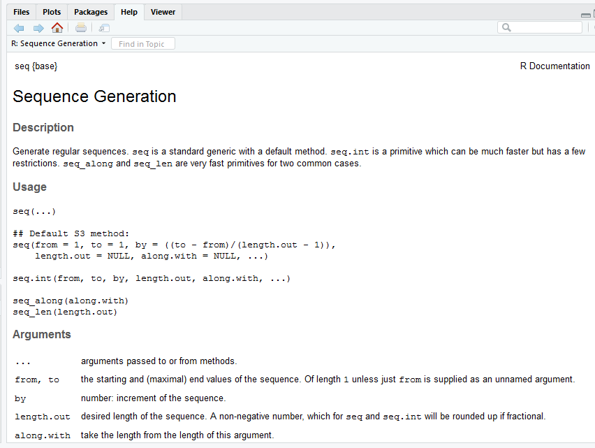 R code is executed in the Console. The blue greater-than-sign (\(\color{blue}{>}\)) on the very last line of the console is a so-called command prompt and it indicates that R is ready to receive commands. If you enter an incomplete line of code, you instead get a blue plus sign (\(\color{blue}{+}\)) prompt on the next line. This means R is expecting you to enter additional information to finish the incomplete code. You can stop this by clicking in the Console panel and pressing Esc.