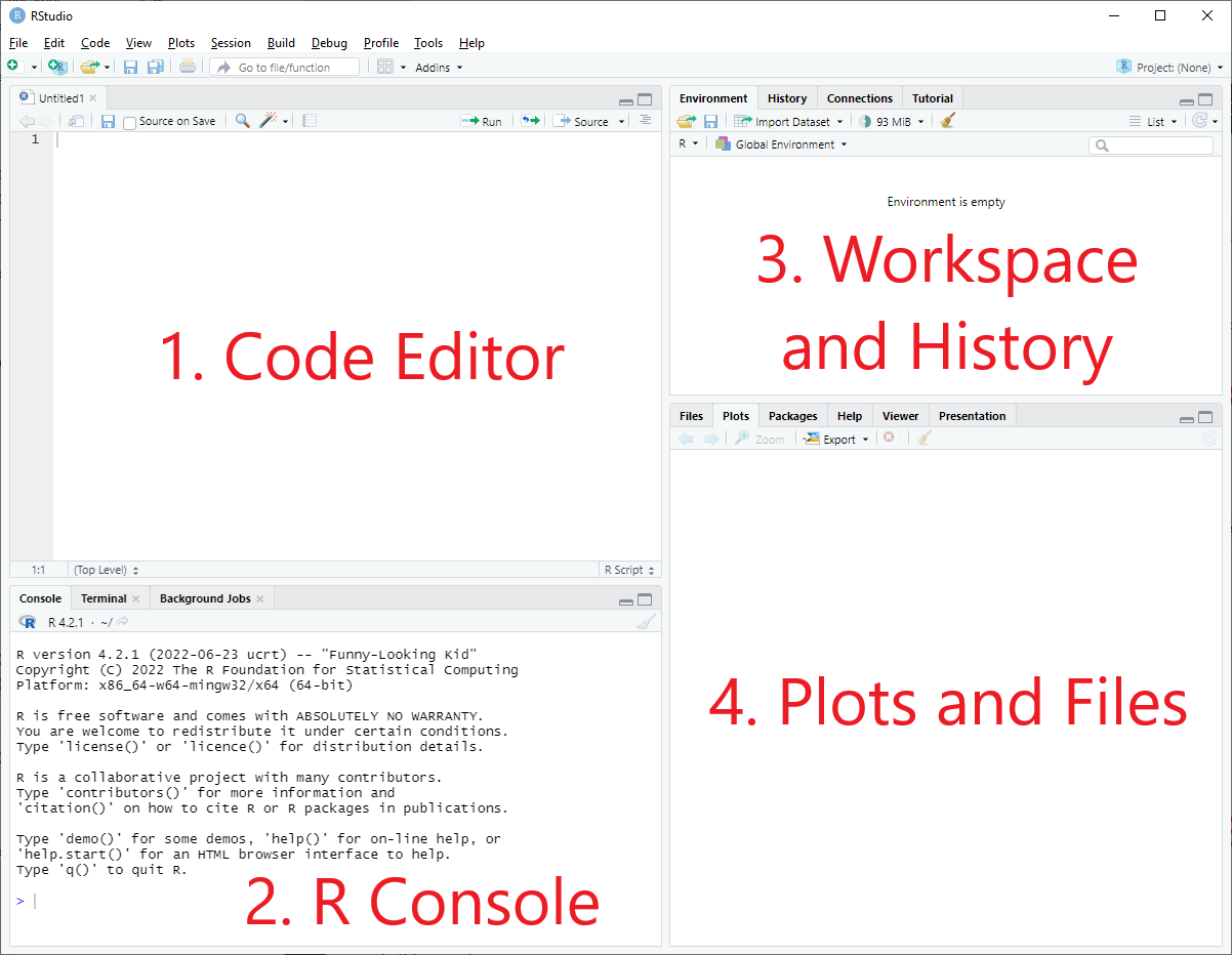 Note that R also comes with an application called RGui, but we will not use this during the course. We will only use RStudio.